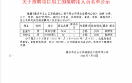 雅安市名山區茶城建設工程有限公司及其下屬全資子公司根據發展需要,按照公開、公平、公正、競爭、擇優的原則招聘工作人員9名(其中:雅安市名山區茶城建設工程有限公司招聘6名,雅安市名山區東融建設投資公司3名)?,F將有關事項公告如下:一、招聘崗位(一)茶城公司1.綜合部工作人員1名(職位編碼20210101);2.財務部工作人員1名(職位編碼20210201);3.工程部工程技術人員1名(職位編碼:20210301);4.工程部工程師1名(職位編碼:20210302);5.工程部項目專員1名(職位編碼:20210303);6.工程部勞務專員1名(職位編碼:20210304)。(二)全資子公司東融公司1.綜...