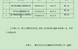 成雅工業(yè)園區(qū)百丈安置房二期項(xiàng)目鋼筋采購(gòu),根據(jù)有關(guān)法律、法規(guī)、規(guī)章的規(guī)定,于2023年4月21日經(jīng)雅安市名山區(qū)益業(yè)商貿(mào)有限公司競(jìng)爭(zhēng)性談判比選流程,評(píng)審工作已經(jīng)結(jié)束,成交人已經(jīng)確定,現(xiàn)將成交結(jié)果公示如下:成交單位名稱:四川霞成商貿(mào)有限公司成交價(jià):加成價(jià)30元/噸進(jìn)場(chǎng)時(shí)間:待甲方通知成交質(zhì)量要求:合格自成交結(jié)果公示之日起一個(gè)工作日內(nèi),對(duì)成交結(jié)果無(wú)異議的,采購(gòu)人將簽發(fā)成交通知書(shū),并在五個(gè)工作日內(nèi)簽訂合同。雅安市名山區(qū)益業(yè)商貿(mào)有限公司2023年4月23日...